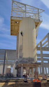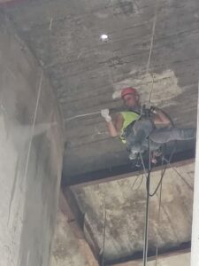 Ми застосовуємо методи промислового альпінізму, що дозволяє нам виконувати роботи на висотних об’єктах, де використання будівельних риштувань або підйомників неможливе. Це значно скорочує час виконання робіт і знижує їхню вартість.